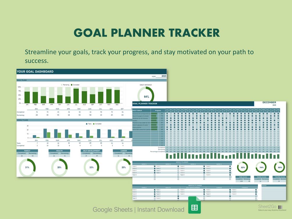 Ultimate Google Sheets Goals & Habits Tracker | Goals Spreadsheet | Habits Tracker | Digital Productivity Planner | Instant Download