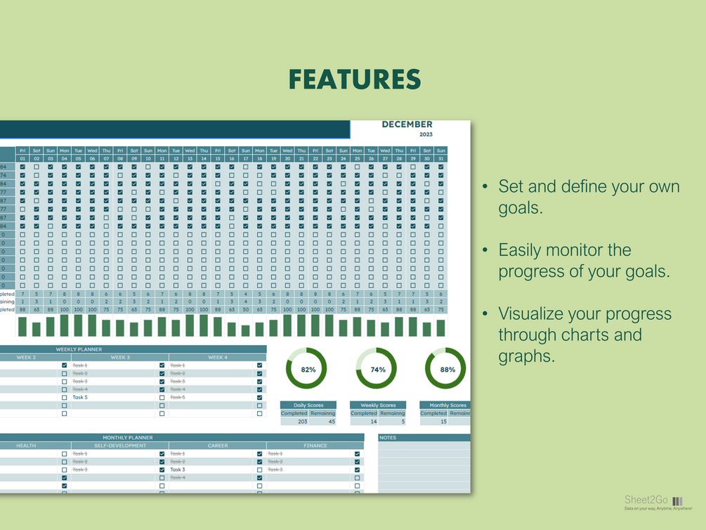 Are you ready to make your dreams a reality? Our powerful Goal & Habits Tracker is here to assist you in setting meaningful goals, developing positive habits, and realizing your full potential.